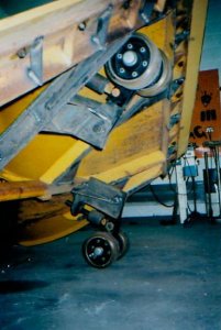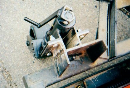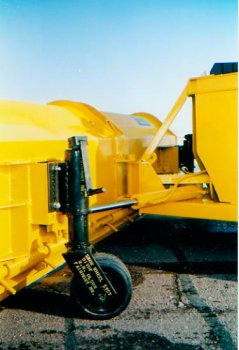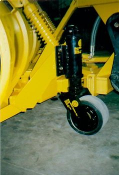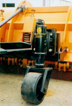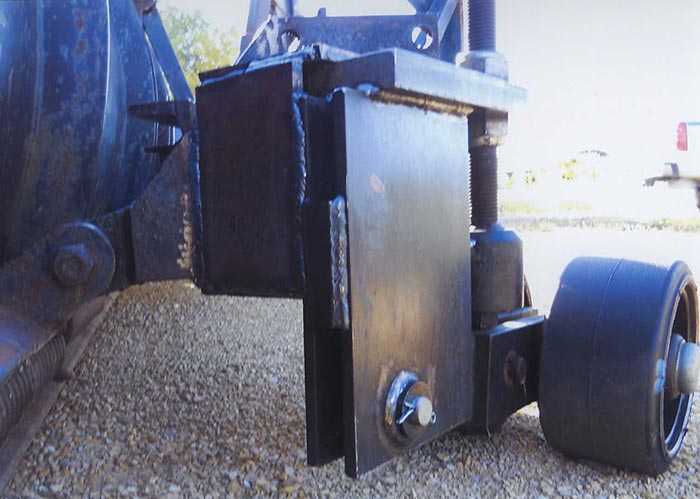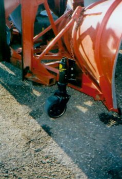 Model 6509 Swivel Snow Wheel with Adjuster, using matching angle iron for mounting on reversible plow |